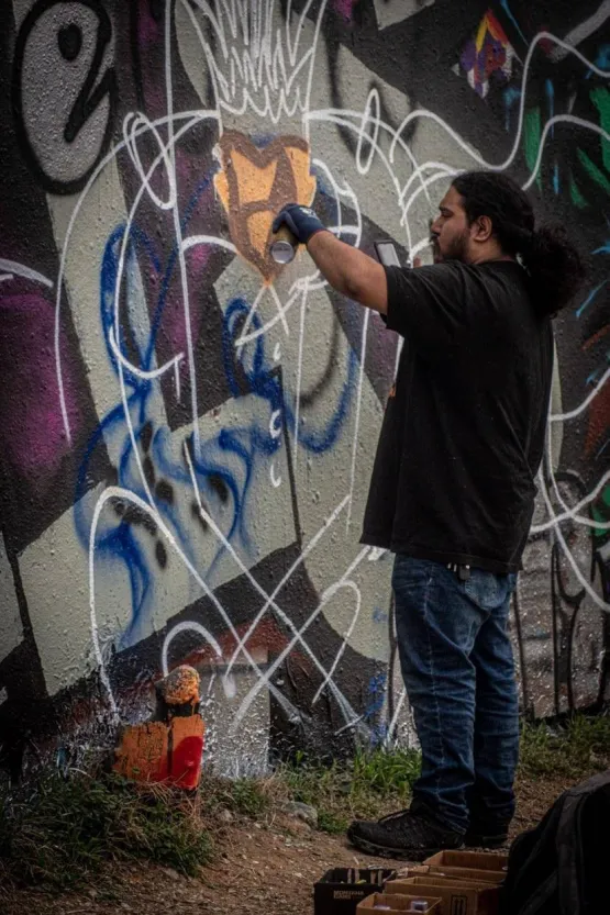 While you may know Chris from his rope work in the kink scene he started an art journey that began with the Covid shut down. While finding an escape he began to pick up spray painting. Starting mainly as pop culture replication it eventually transformed to art focused on the absurd and uncomfortable. For this Technosexual he hopes to make you wonder "Do I truly have private moments" and "Can I hide from big brother?"